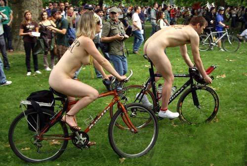 美女壮汉裸身骑行惊呆众人